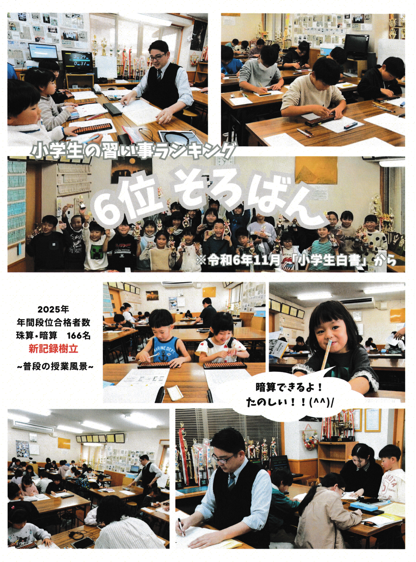 昭和、平成で珠算暗算段位合格者数 4,000名 突破!令和も珠算教育に燃えています!そろばん・暗算の名門校で、一緒に楽しくそろばん学習しよう!