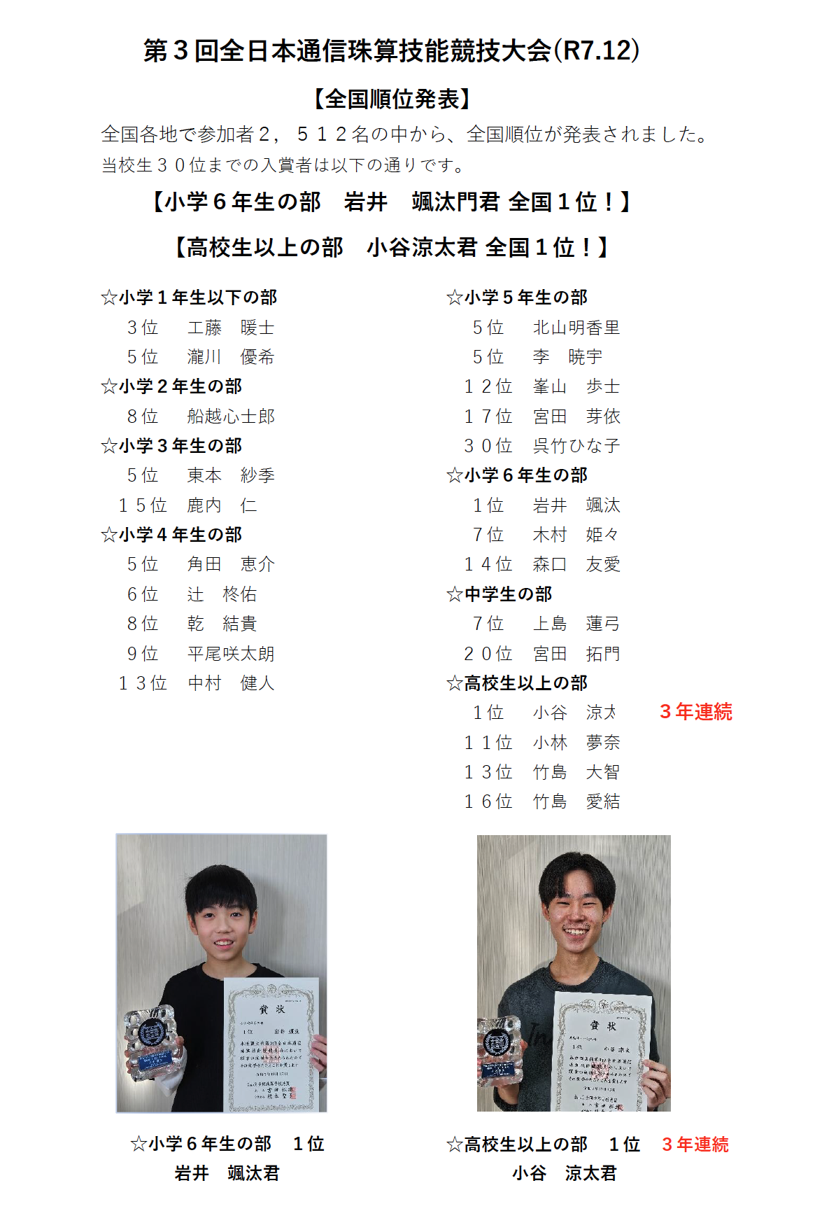 第3回 全日本通信珠算技能競技大会